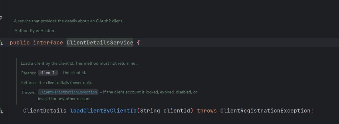 这个是客户端细节service,包括客户端的clientId跟secret,我们进来得知道你是什么客户端